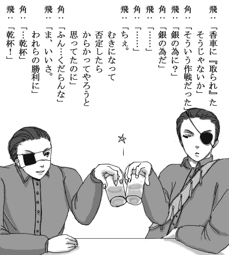 将棋の駒擬人化の飛車(左)と角行。